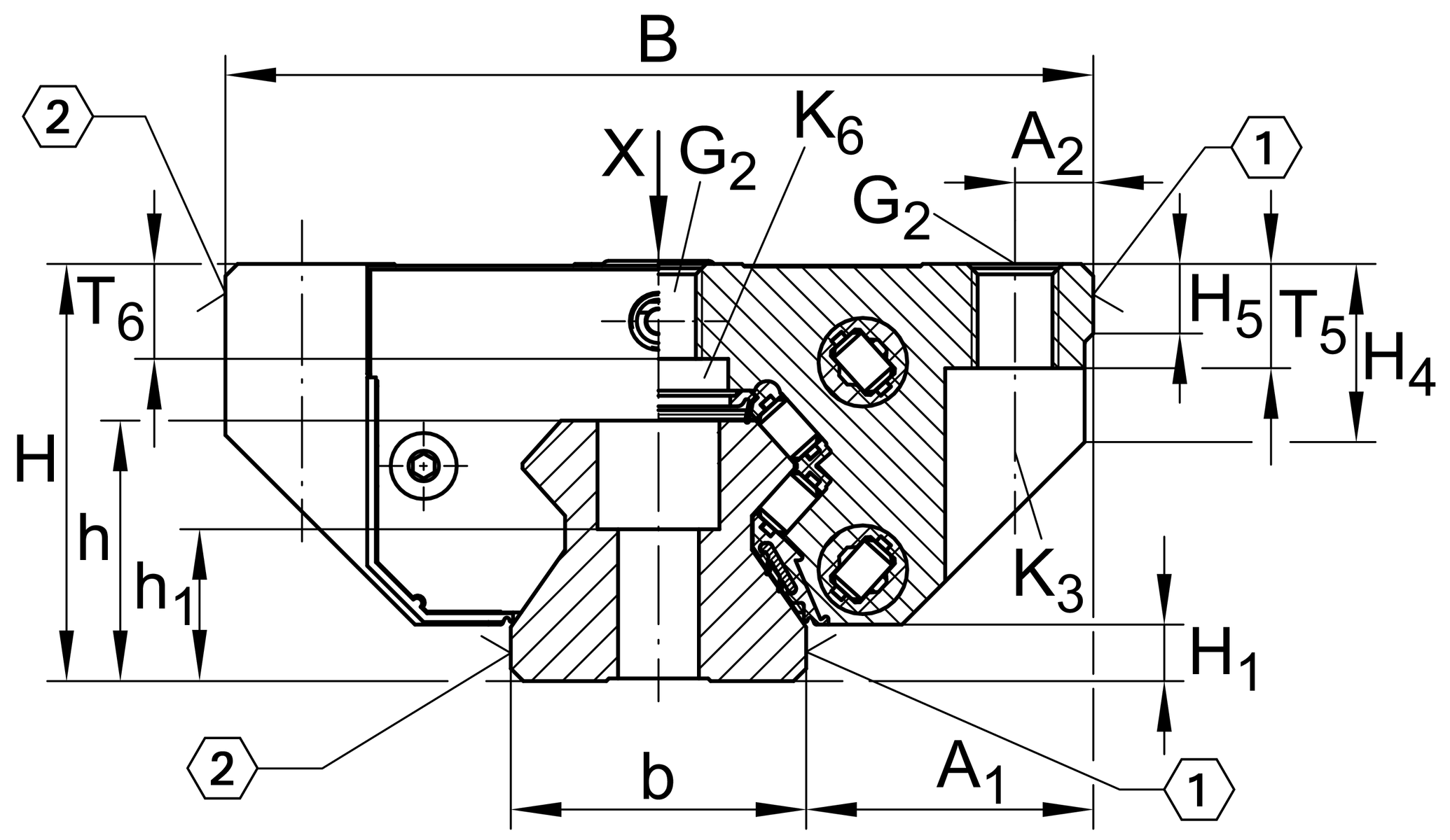 | G2 | M8 | fixing screws below (DIN ISO 4762-12.9) |