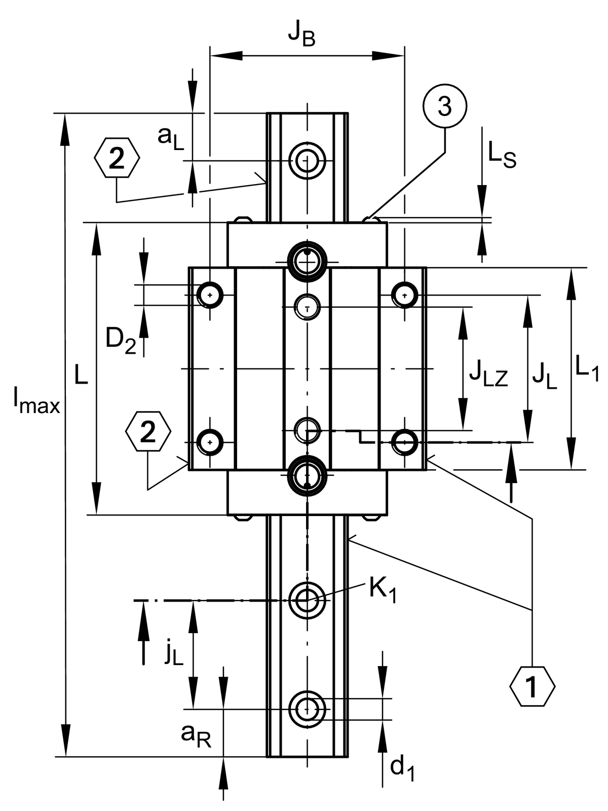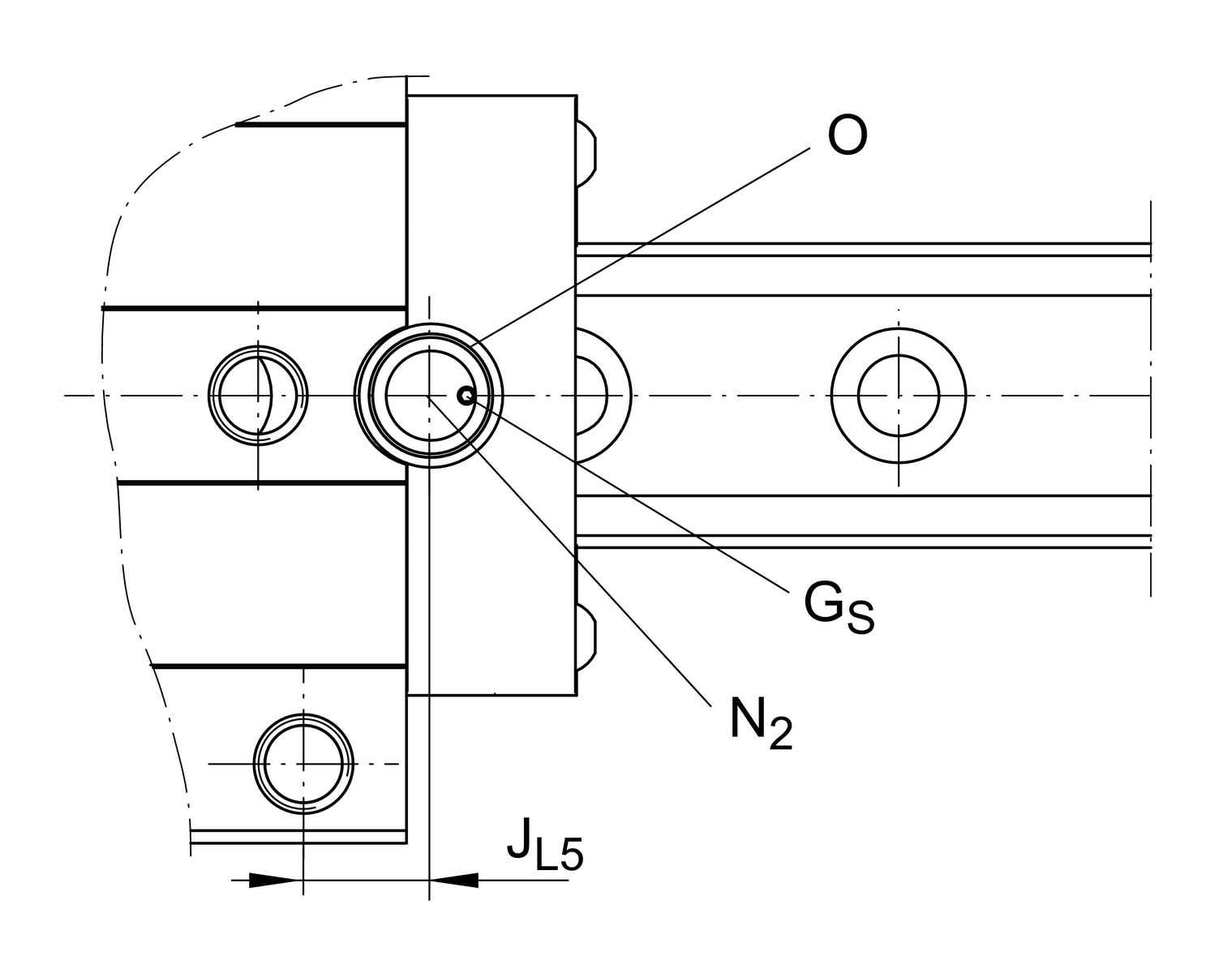| N2 | 3 mm | max. diameter of lubrication hole in adjacent construction 4 |
