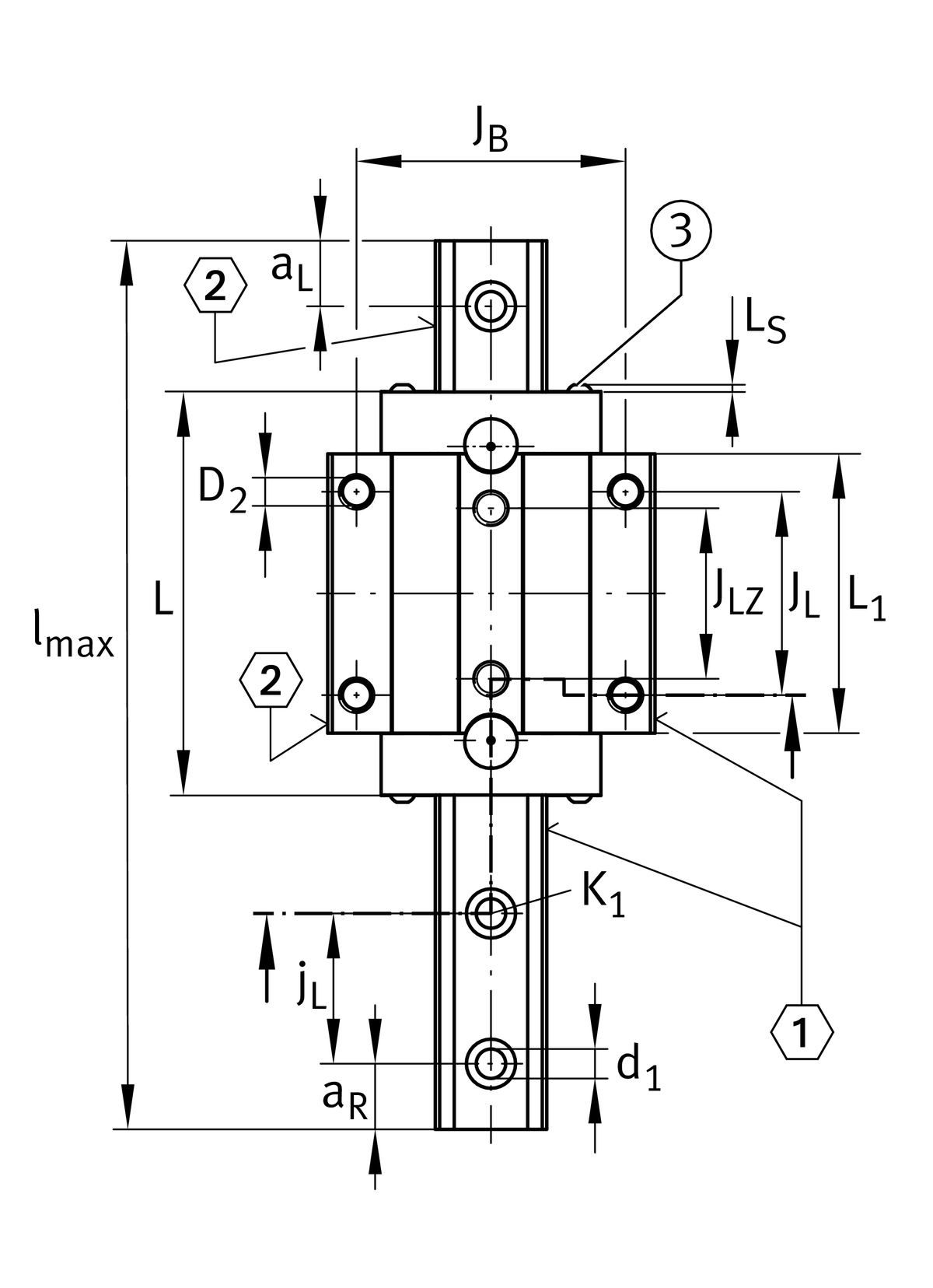 | N2 | 6 mm | max. diameter of lubrication hole in adjacent construction 4 |