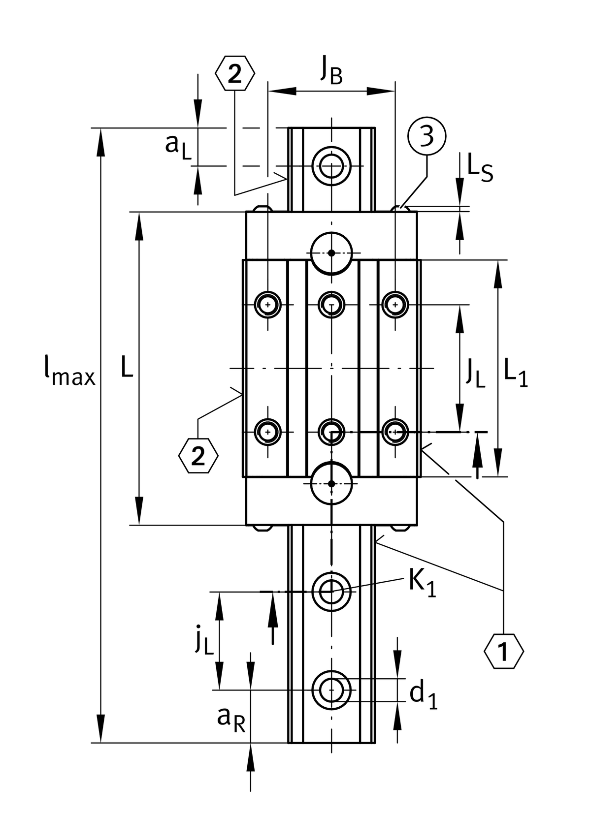 | N2 | 6 mm | max. diameter of lubrication hole in adjacent construction 4 |