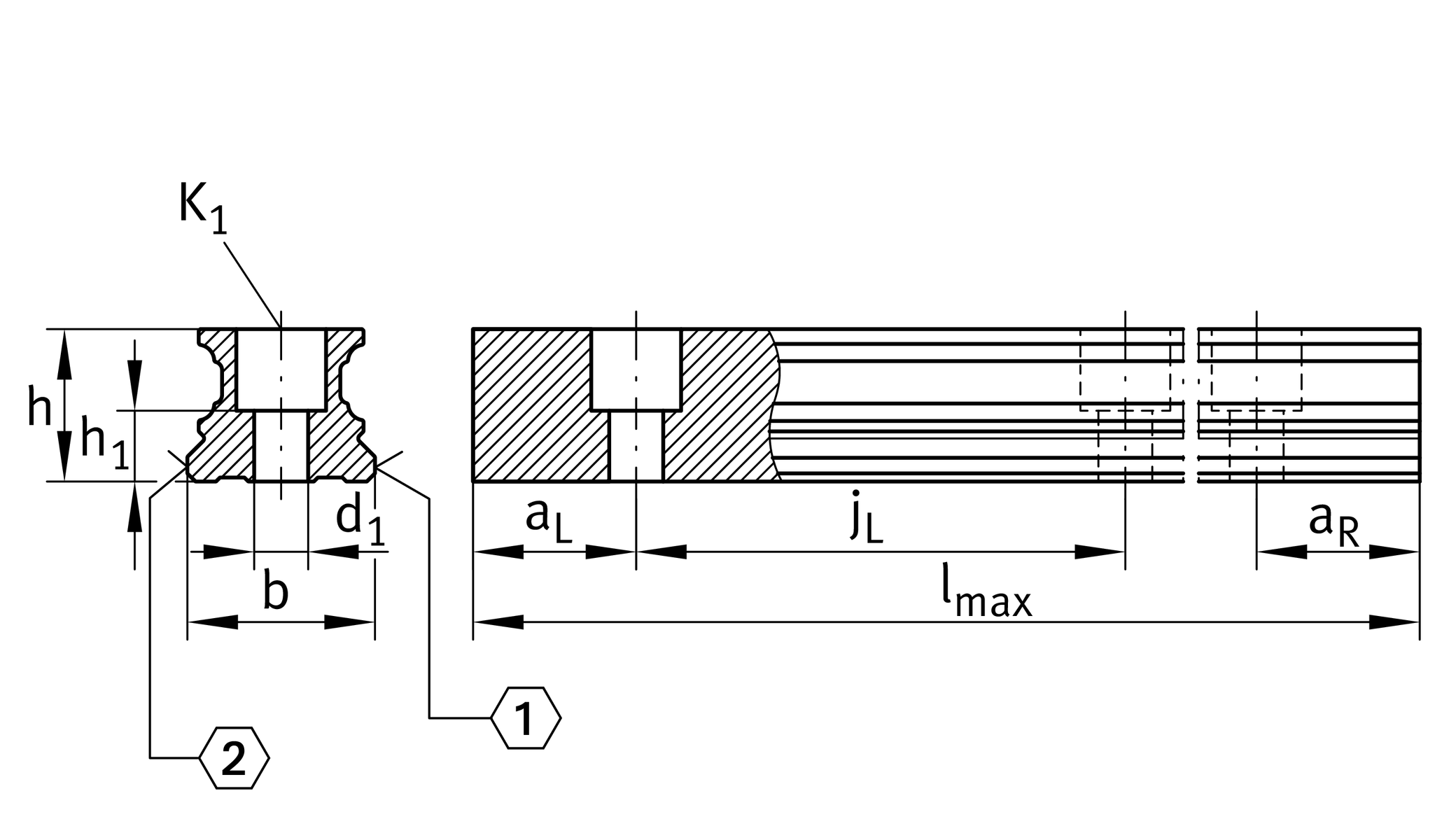 | lmax | 6,000 mm | Max length single piece guideway 2 |