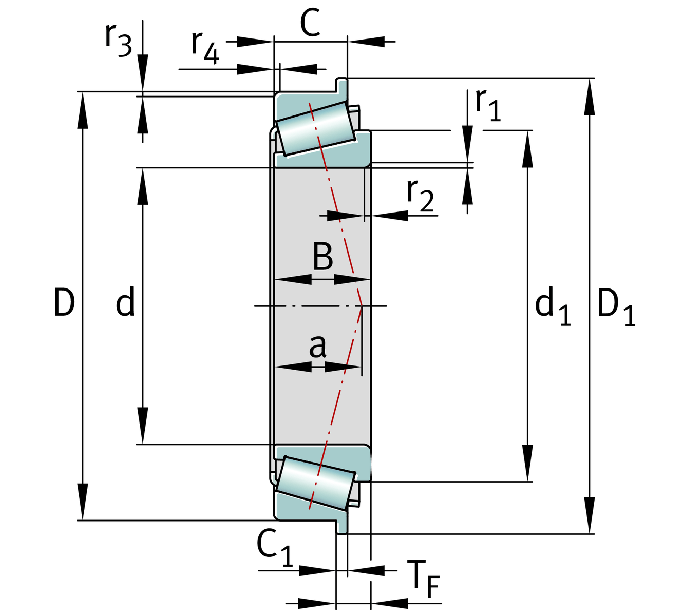 | TF | 16.67 mm | 法蘭軸承組裝寬度 |