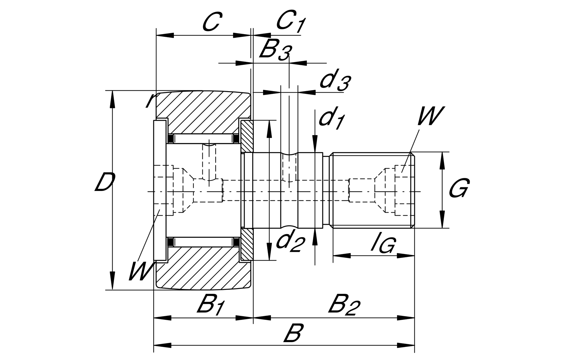 | d1 | 12 mm | 滾柱螺柱/螺柱配合直徑 |
