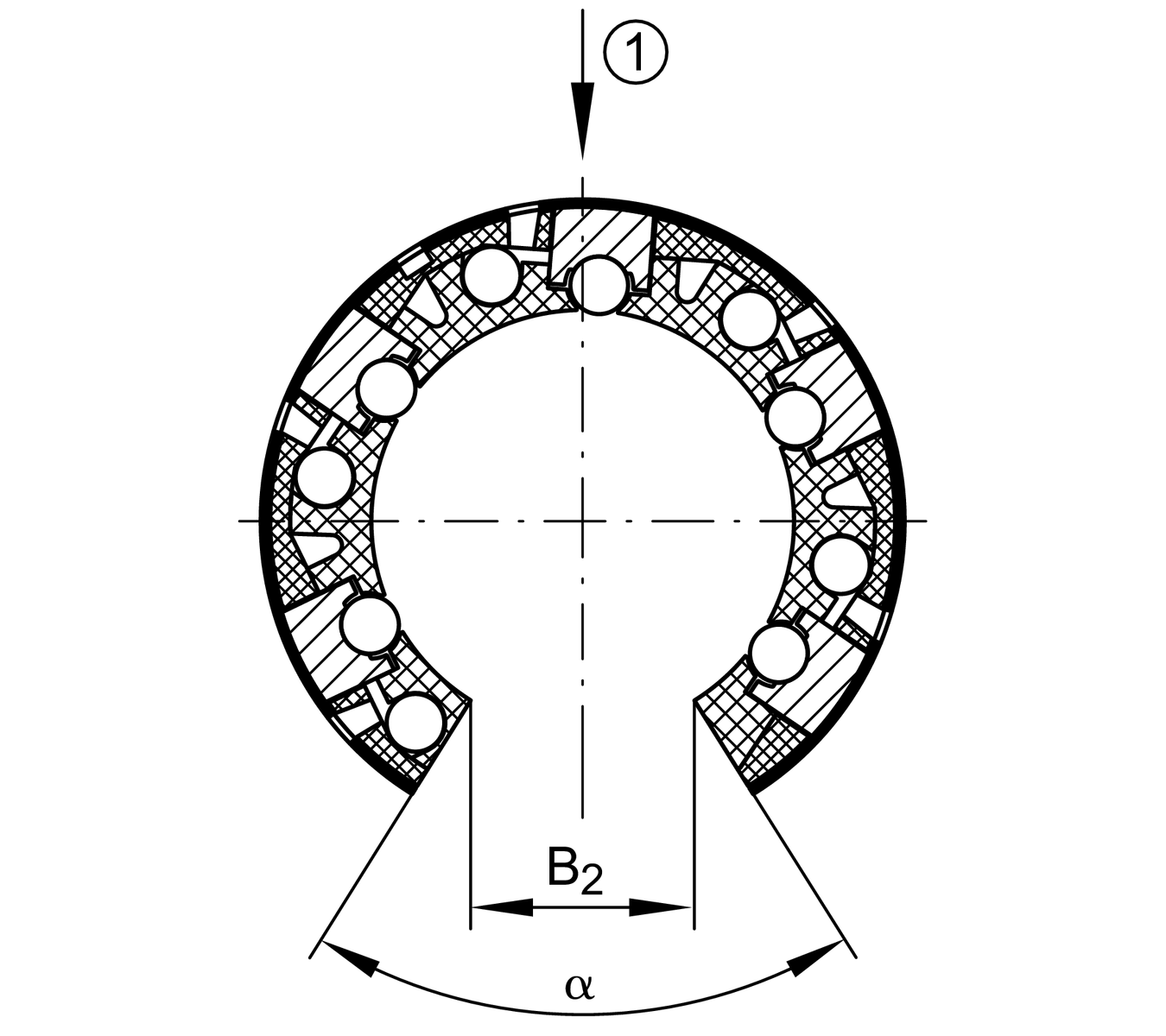 | B2 | 19 mm | Width of sector opening 2 |