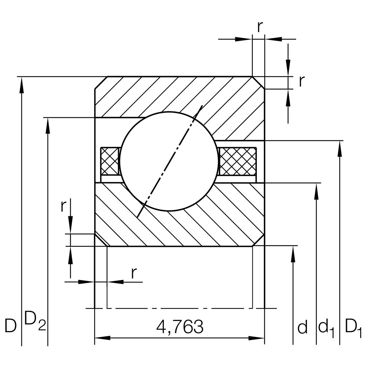 | D2 | 45.1 mm | Shoulder diameter on outer ring small side face |
