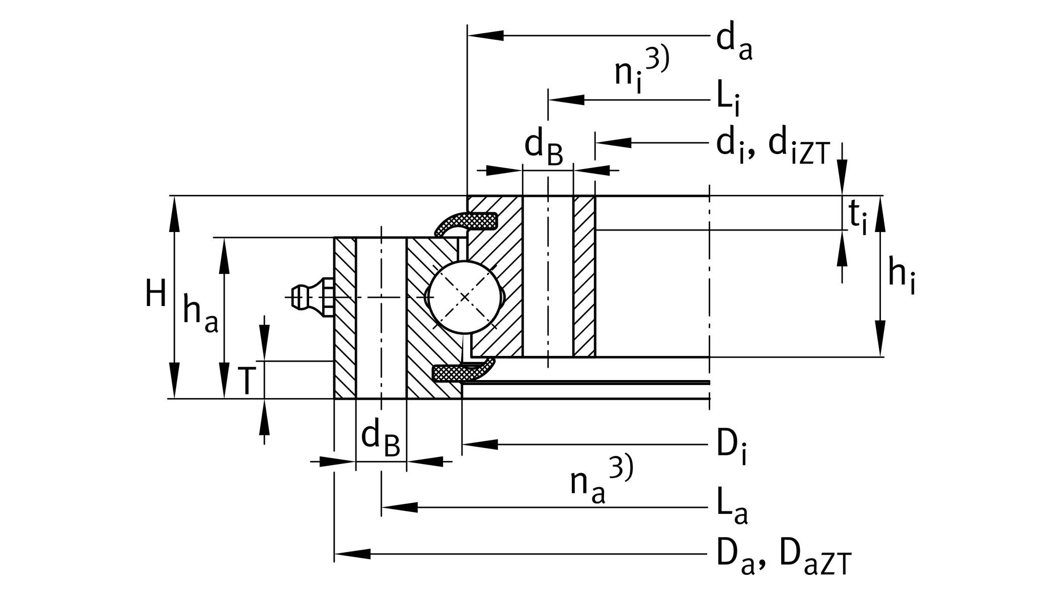| Da ZT | 614 mm | Centring diameter outer ring |
