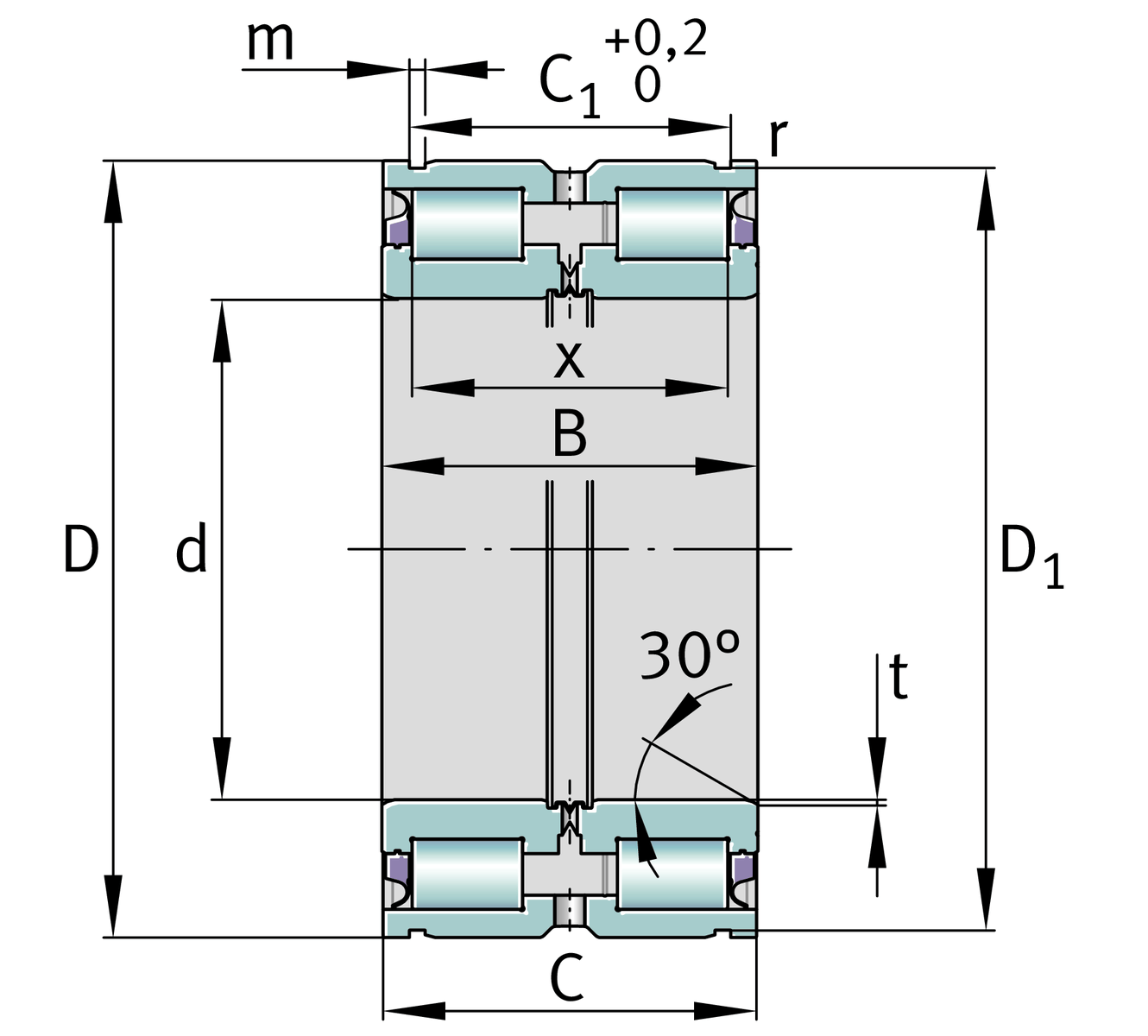 | X | 28.5 mm | 滾動體之間的距離 |