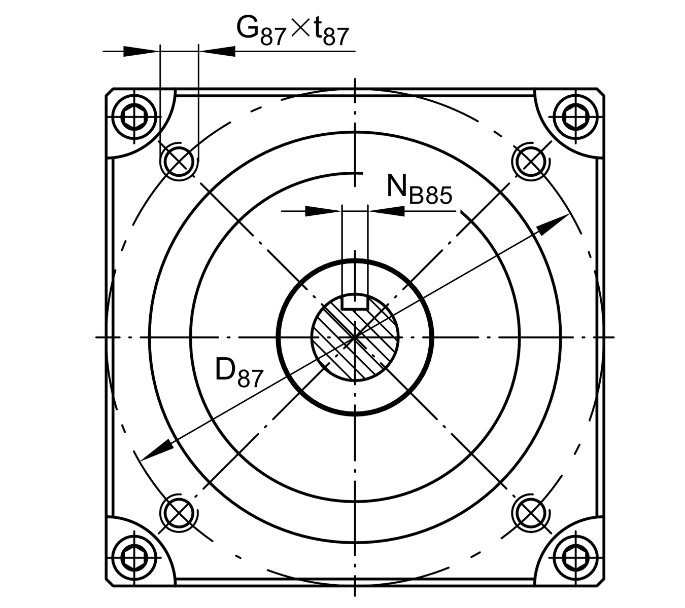 | NT85 | 4 mm | Depth of Keyway, Tolerance P9 |