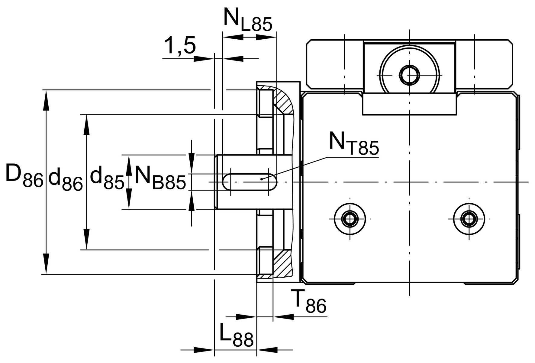| NT85 | 1.8 mm | Depth of Keyway, Tolerance P9 |