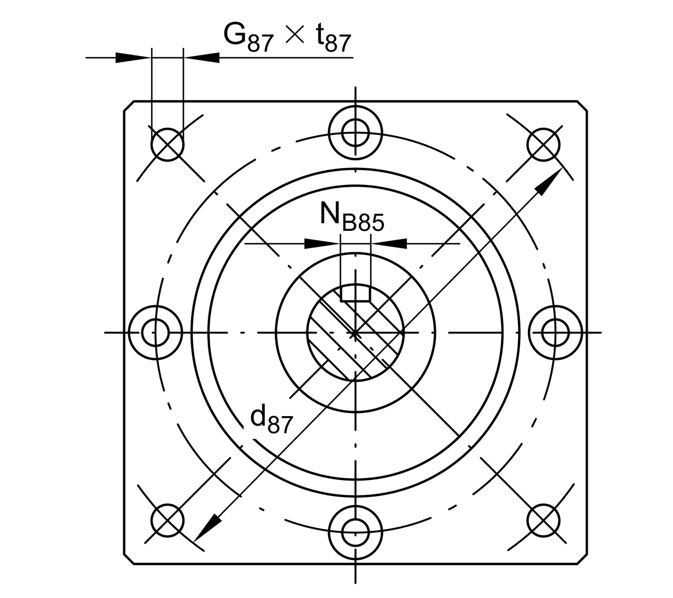 | NT85 | 3.5 mm | Depth of Keyway, Tolerance P9 |