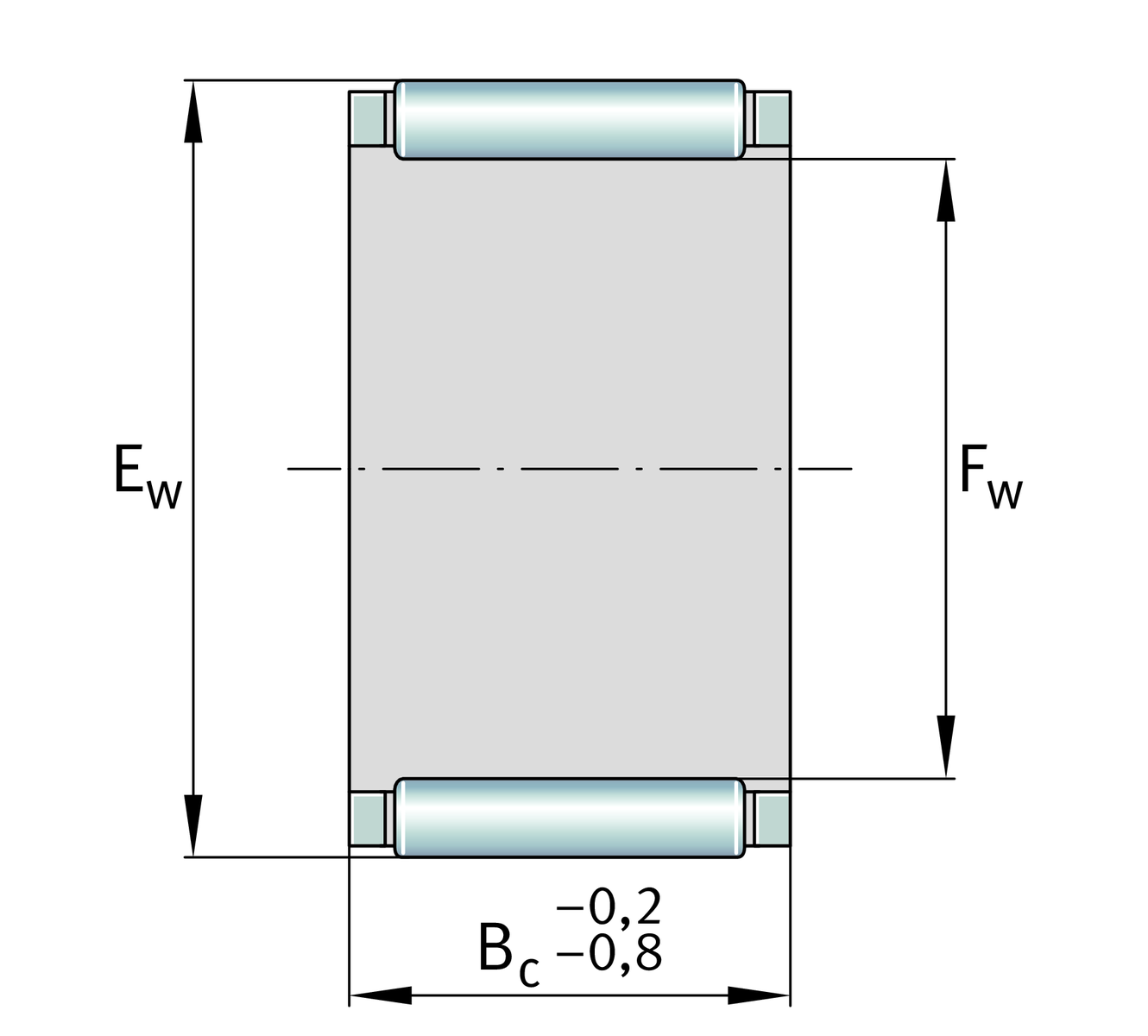 | Ew | 5 mm | Outside diameter of needle roller complement |